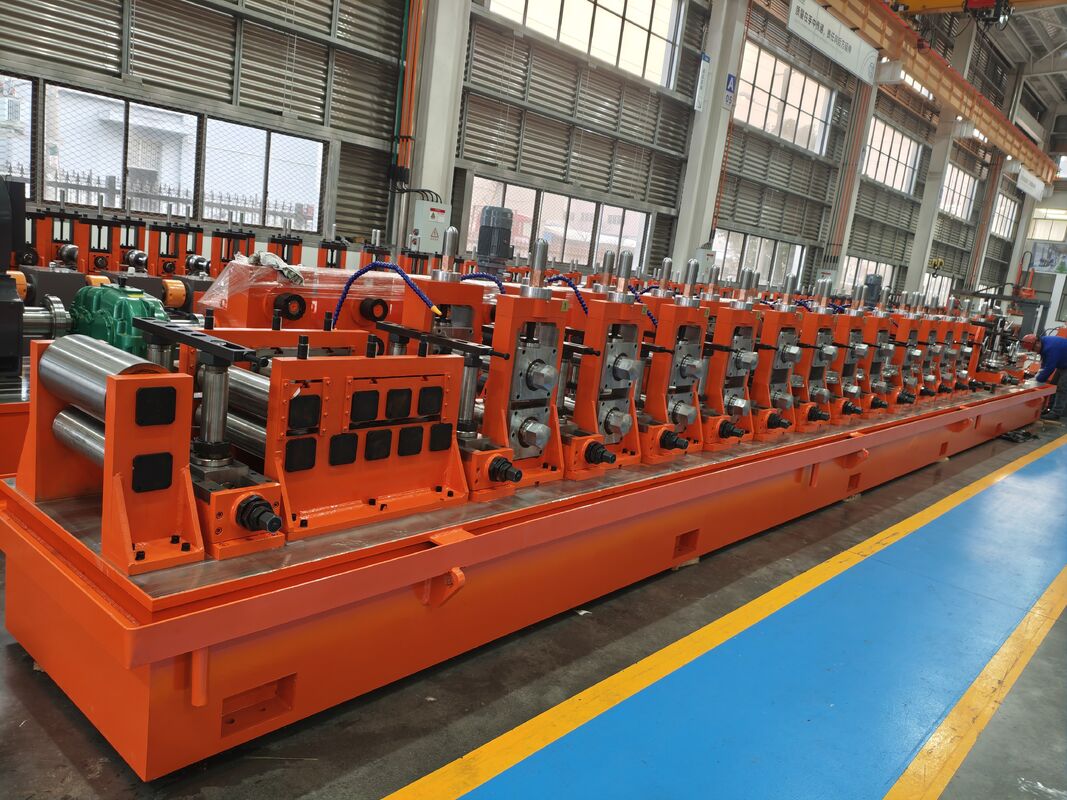 Une machine de formage de tubes est un type de machine industrielle utilisée pour produire des tubes ou tuyaux creux et cylindriques à partir de bandes ou de bobines de métal plates. Le formage au rouleau est un procédé de travail des métaux qui consiste à faire passer une bande continue de métal à travers une série de rouleaux pour lui donner progressivement la forme du profil transversal souhaité. Dans le cas d'une machine de formage de tubes, l'objectif est de créer des tubes ou des tuyaux avec une section transversale circulaire ou personnalisée.